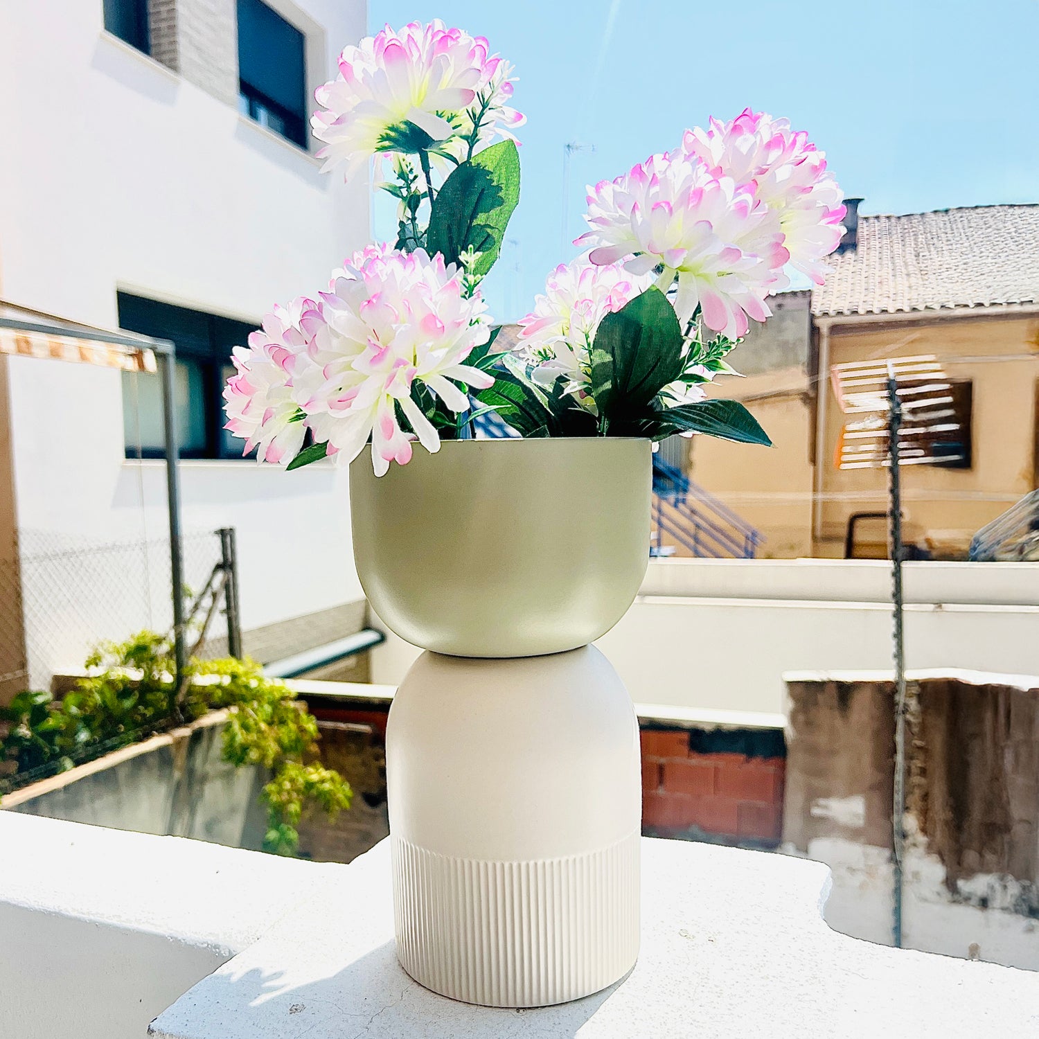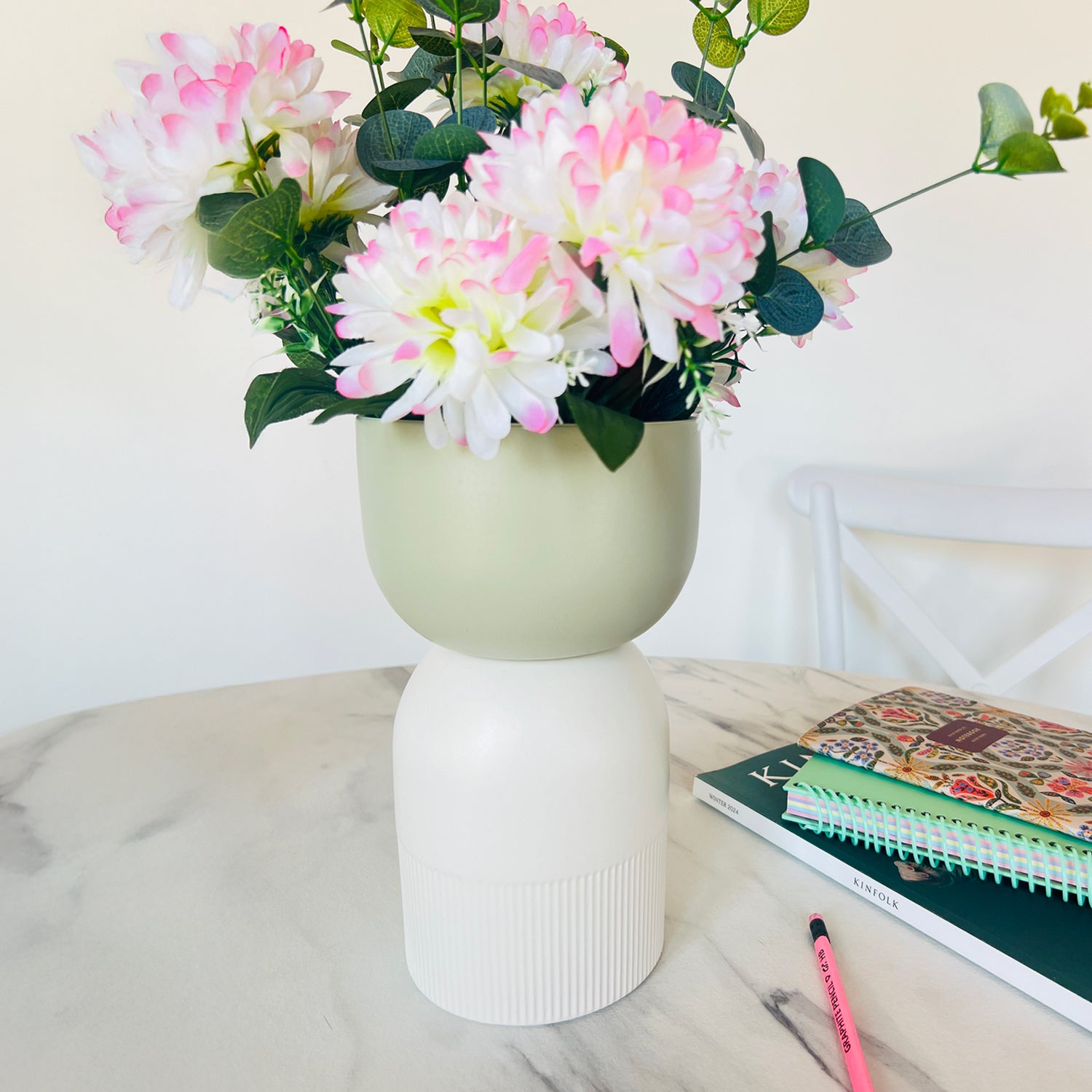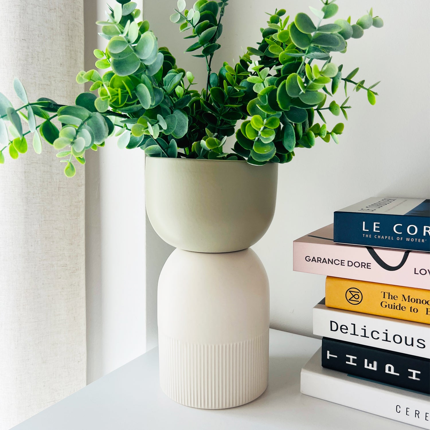 Flip Reversible Ceramic Vase – Ivory & Olive Medium