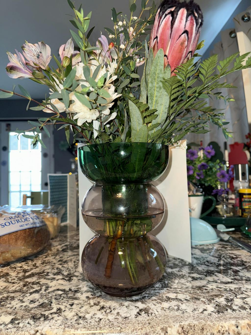 The Cloudnola Bubble Vase in Green and Pink brings bold color and modern design together in a stunning, versatile vase. Made from mouth-blown glass, this vase features a reversible design with green on one side and pink on the other, allowing you to easily switch between two vibrant colors to complement your space.